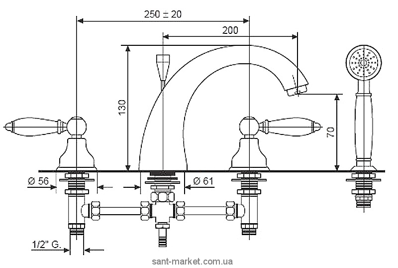 Змішувач двохвентильний на борт ванни з душем EMMEVI колекція Deco Ceramic хром СR121120