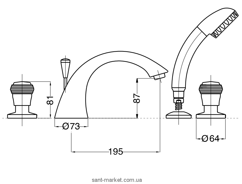 Центральним елементом конструкції цього змішувача для ванни є граціозно вигнутий кран, що плавно потовщується біля основи. Також поблизу основи крана, у верхній частині, є витончений конусовидний перемикач з крана на душ. Сопло крана трохи скошене, що дає додаткові зручності при його використанні. У комплект змішувача входять і дві класичні ручки-вентилі для регулювання подачі гарячої та холодної води. Крім стандартного виконання, вони можуть поставлятися у варіантах "Цитадель", "Мінарет" та "Фенікс". В комплекті також є душ, що монтується без застосування додаткових навісних елементів.