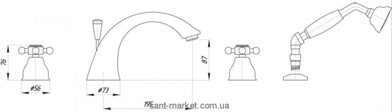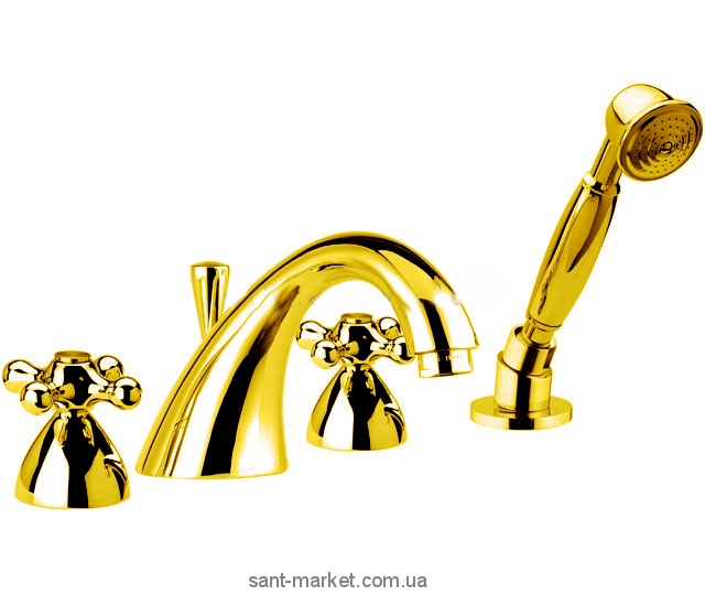 Змішувач двохвентильний на борт ванни з душем Bugnatese колекція Lady золото LADDO981