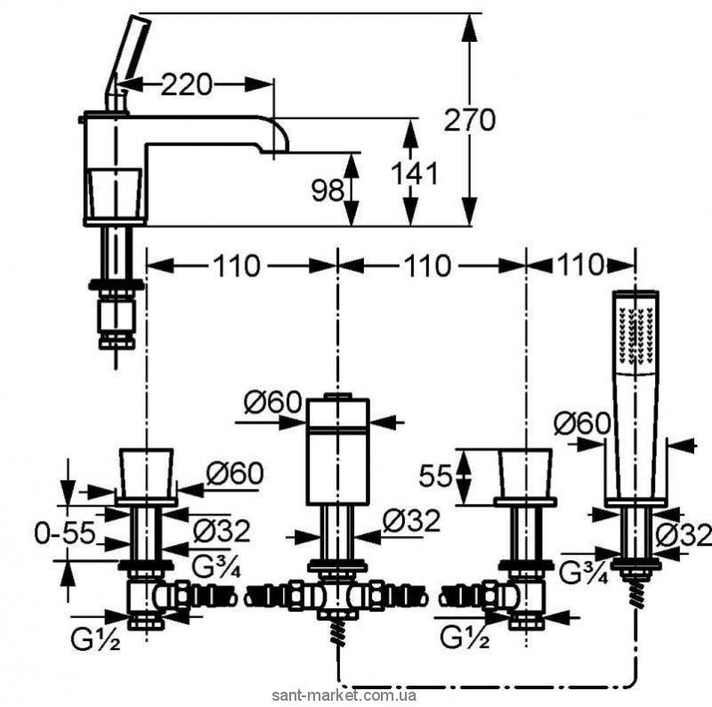 Змішувач двохвентильний на борт ванни з душем Kludi колекція Joop! хром 55425Н805