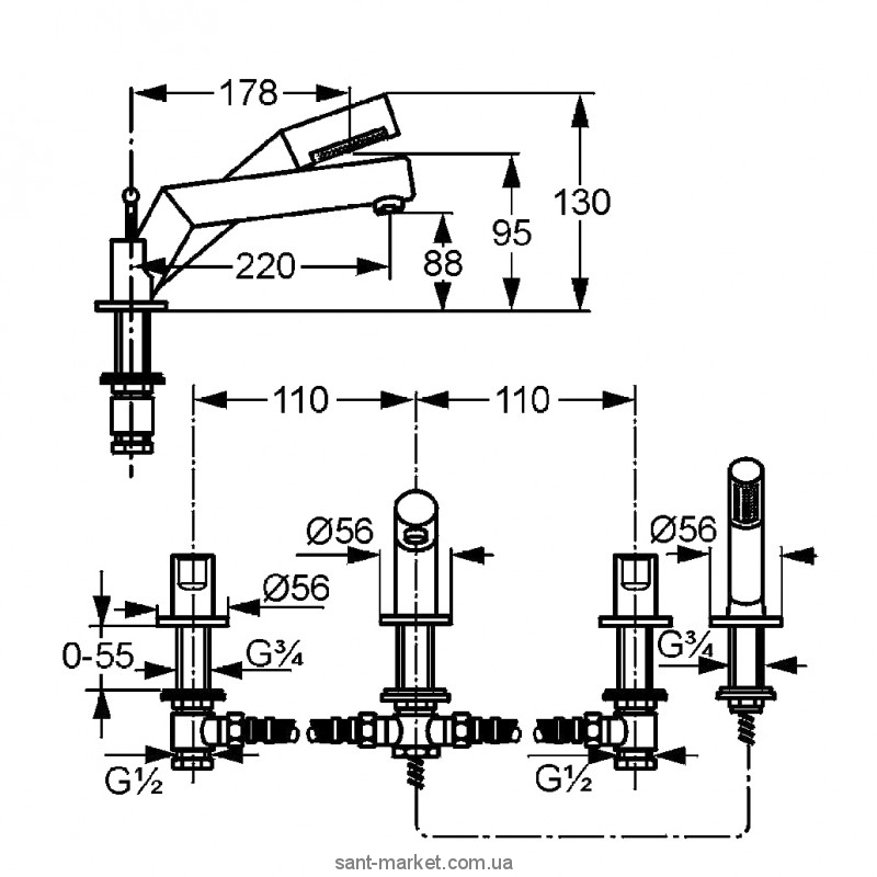 Змішувач двохвентильний на борт ванни з душем Kludi колекція New Wavеs хром 574250530