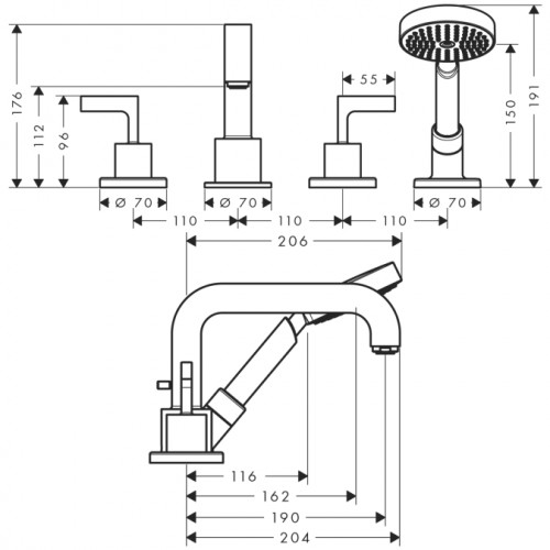 Змішувач двохвентильний на борт ванни з душем Hansgrohe колекція Axor Citterio хром 39454000