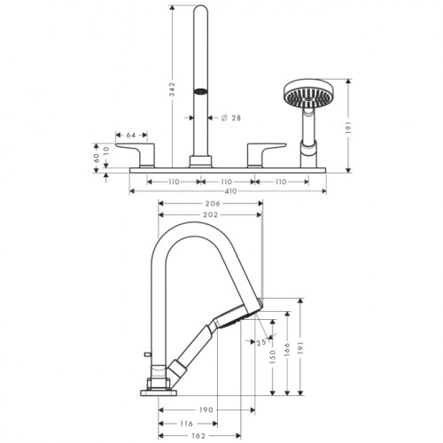 Змішувач двохвентильний на борт ванни з душем Hansgrohe колекція Axor Citterio M хром 34455000