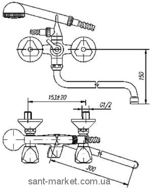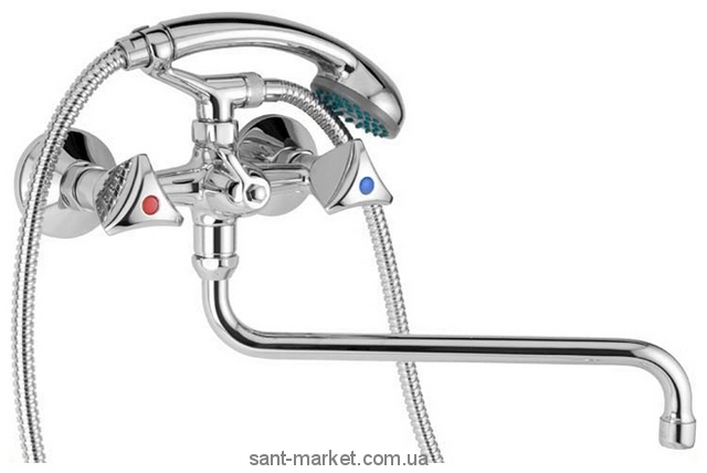 Змішувач двохвентильний з довгим виливом та душем Mofem колекція Metal plus хром 145-0001-15