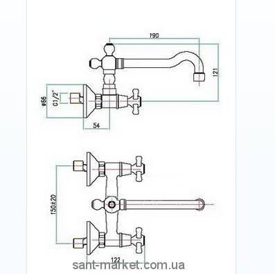 Змішувач двохвентильний з коротким виливом Fiore колекція Margot бронза 26064300 Old Bronze