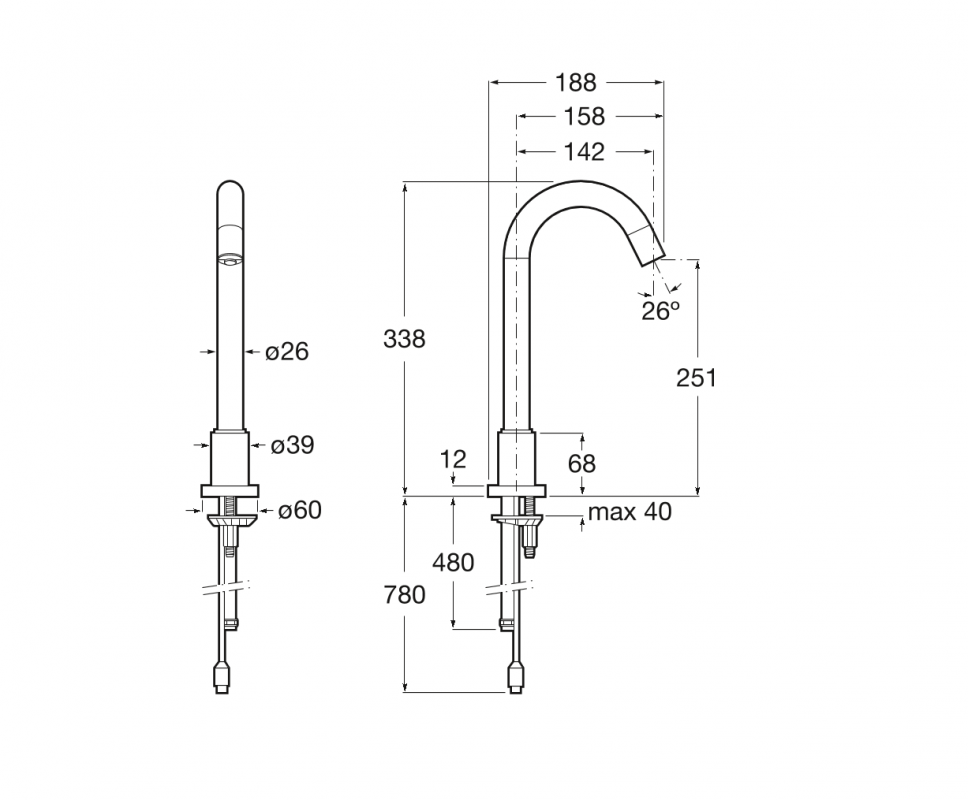 Електронний високий змішувач для раковини Roca Loft-E з блоком попереднього змішування, харчування від мережі