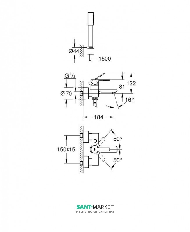 Змішувач одинважільний для ванни Grohe Lineare з душовим гарнітуром хром 33850001