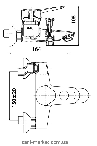 Змішувач одинважільний для ванни мс коротким зливом Ferro колекція Napoli хром BRN1