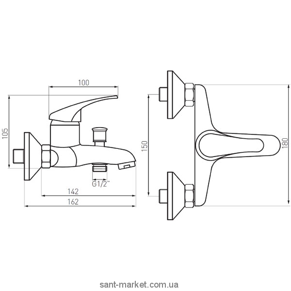 Змішувач одинважільний для ванни з душем Ferro колекція Basic хром BBC11