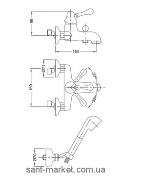 У комплект до змішувача для ванни Bugnatese LEM входить душ, виконаний в єдиному зі змішувачем стилі – ручка середньої довжини плавно переходить у класичну лійку круглої форми.