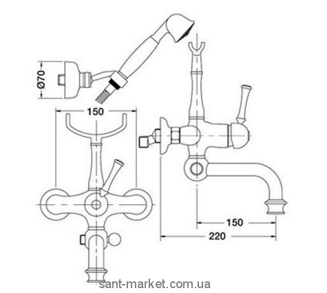 Змішувач одинважільний для ванни з душем Bugnatese колекція Denver хром DENCR6402
