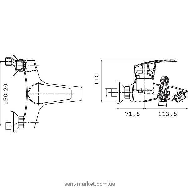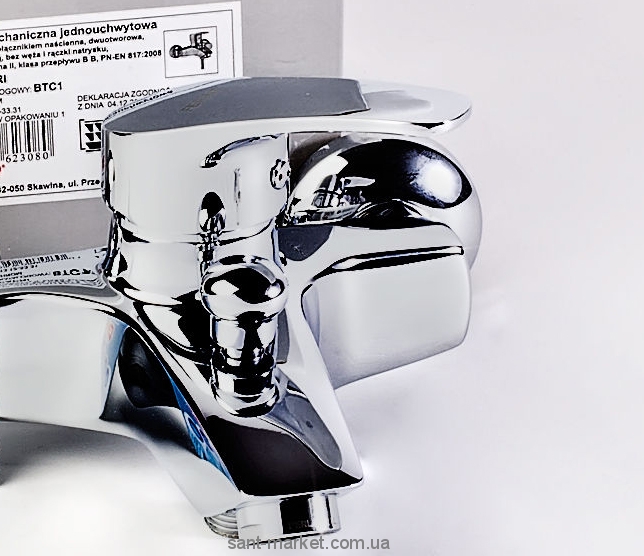 Змішувач одинважільний для ванни з коротким виливом Ferro колекція Capri хром BTC1