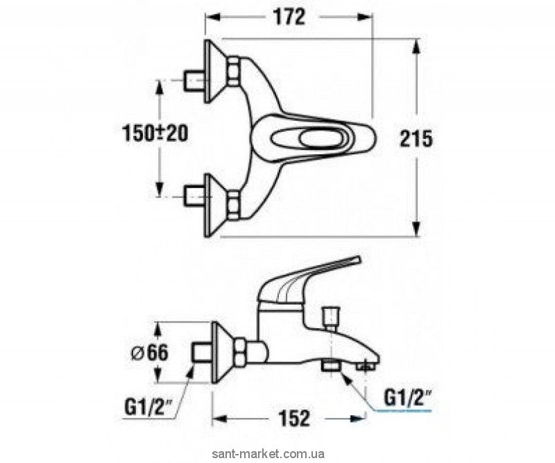 Змішувач одинважільний для ванни з коротким виливом Jika Olymp H21617004000