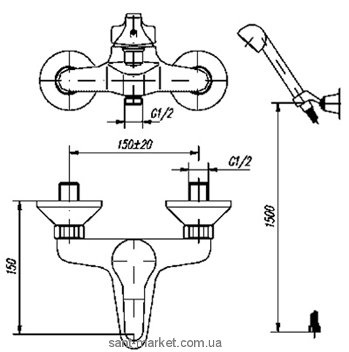 Змішувач одинважільний для ванни з коротким виливом та душем Mofem колекція Trend хром 151-0017-00