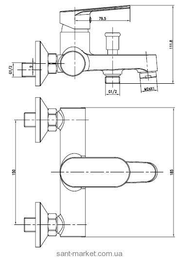 Змішувач одинважільний для ванни з коротким виливом Imprese колекція Lesna хром 10070