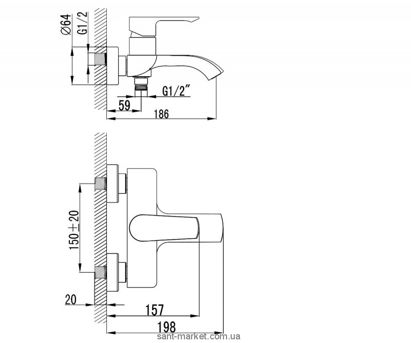 Змішувач одинважільний для ванни з коротким виливом Imprese колекція Vyskov хром 10340