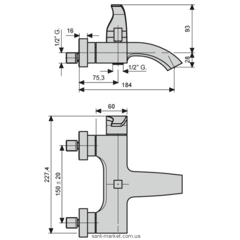 Змішувач одинважільний для ванни з коротким виливом EMMEVI колекція Niagara хром CR74031
