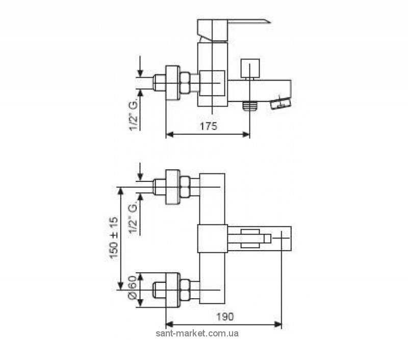Змішувач одинважільний для ванни з коротким виливом EMMEVI колекція Sicily хром CR38001
