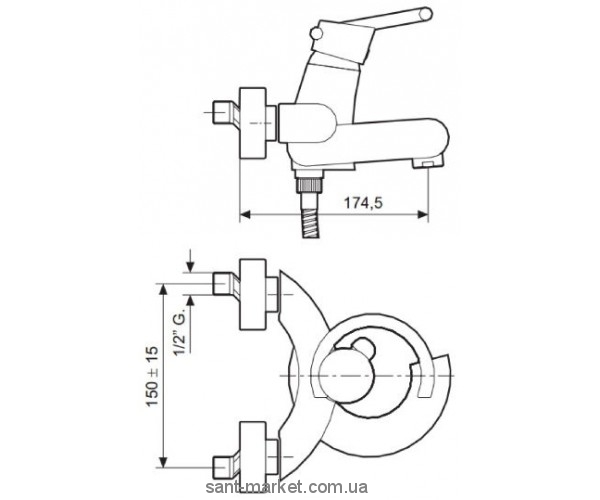 Змішувач одинважільний для ванни з коротким виливом EMMEVI колекція Twist сатин / хром CS6601