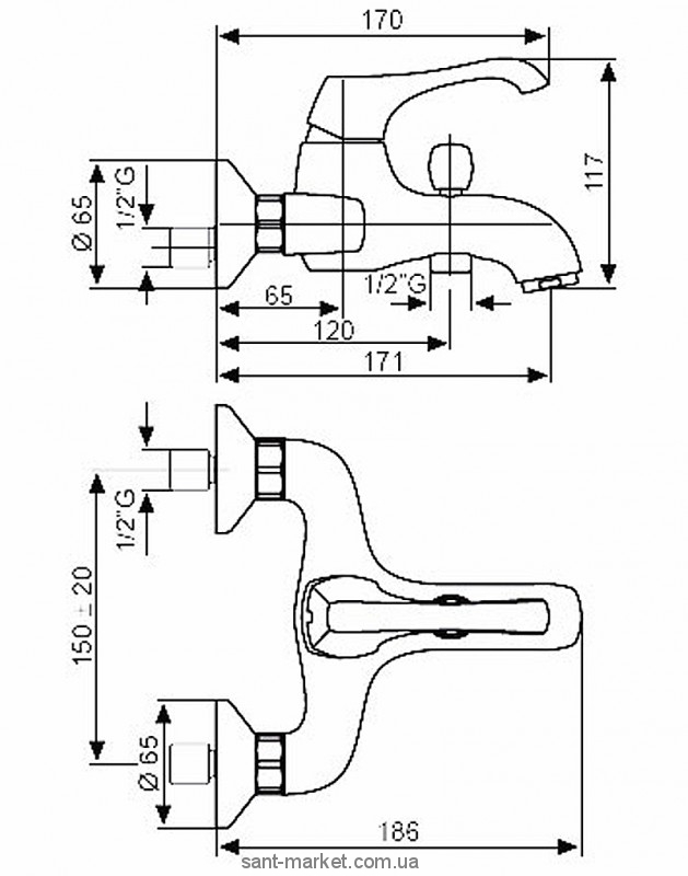 Змішувач одинважільний для ванни з коротким виливом EMMEVI колекція Ares хром CR76001
