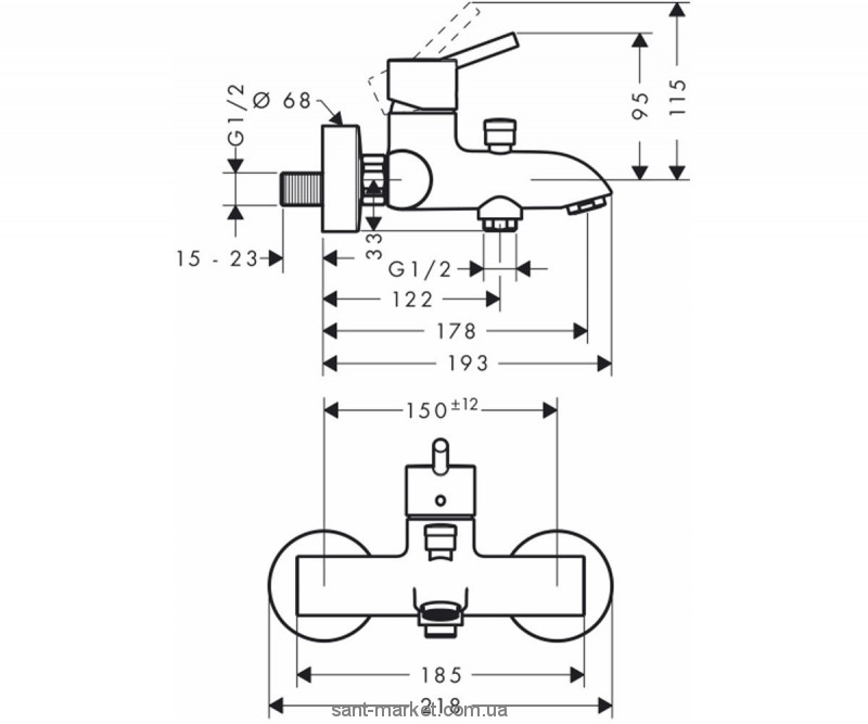 Змішувач одинважільний для ванни з коротким виливом Hansgrohe колекція Fina хром 15114000