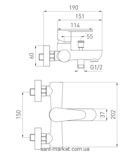 Змішувач одинважільний для ванни з коротким виливом Ferro колекція Algeo хром BAG1