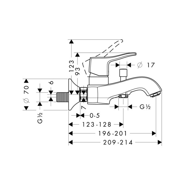 Змішувач одинважільний для ванни з коротким виливом Hansgrohe колекція Metris Classic хром 31478820