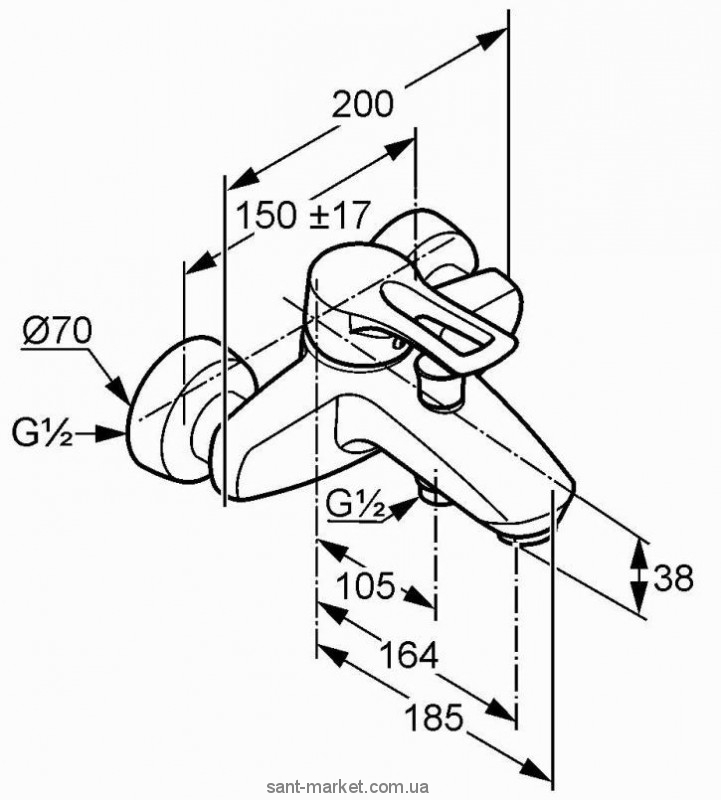 Змішувач одинважільний для ванни з коротким виливом Kludi колекція MX хром 334450562