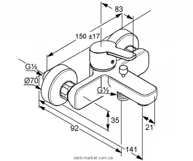 Змішувач одинважільний для ванни з коротким виливом Kludi колекція Logo Neo хром 376810575