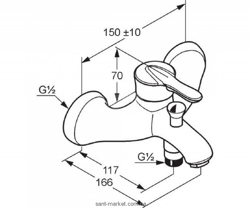 Змішувач одинважільний для ванни з коротким виливом Kludi колекція Amphora хром 544430575