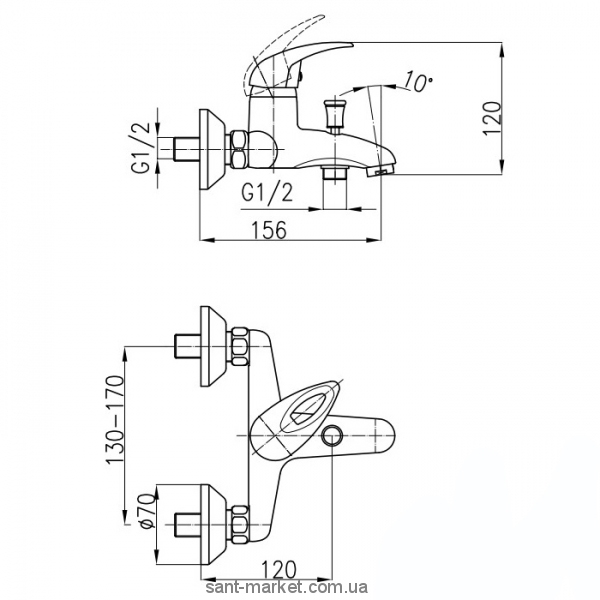 Змішувач одинважільний для ванни з коротким виливом KFA колекція Kroma хром 544-030-00