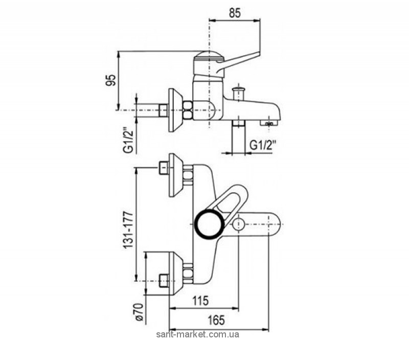 Змішувач одинважільний для ванни з коротким виливом KFA колекція Nefryt хром 504-010-00