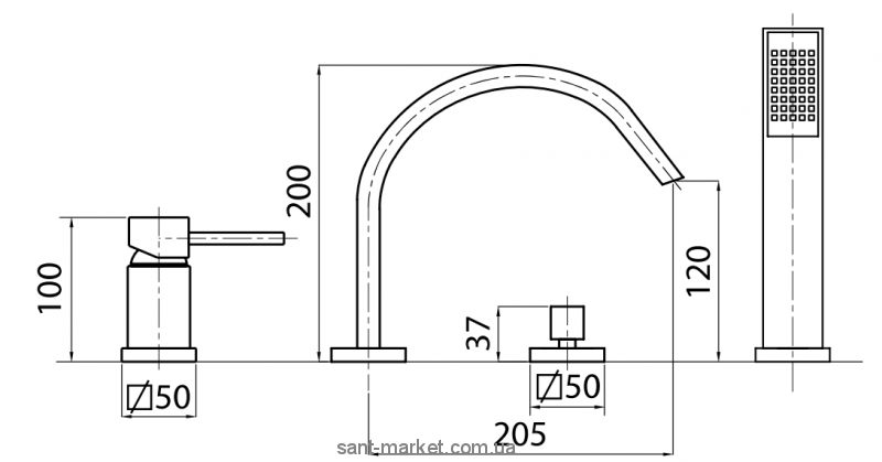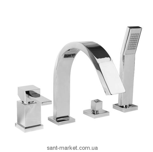 Вказана ручка розташовується на строгому кубовидному підставі зі стороною бл. 5 см. Наступним елементом змішувача є невеликий зручний перемикач з крана на душ із капелюшкомяк куба. Перемикач також має плоску квадратну основу для кріплення. Останнім елементом у комплекті є душ оригінальної сучасної форми: плоска прямокутна ручка, злегка зігнута в останній третині, має в цій же частині з внутрішньої сторони поряд квадратних отворів для випуску води. Душ монтується в обрану поверхню також за допомогою невисокого квадратного кріплення, з'єднаного з основою ручки душу.