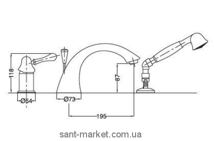 Змішувач одинважільний на борт ванни з душем Bugnatese Колекція Maya хром MAYCR8950