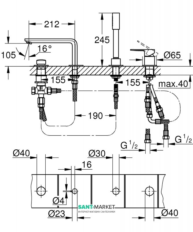 Поспішайте купити Змішувач одинважільний на борт ванни з душем Grohe колекція Lineare хром 19577001 за акційною ціною.
