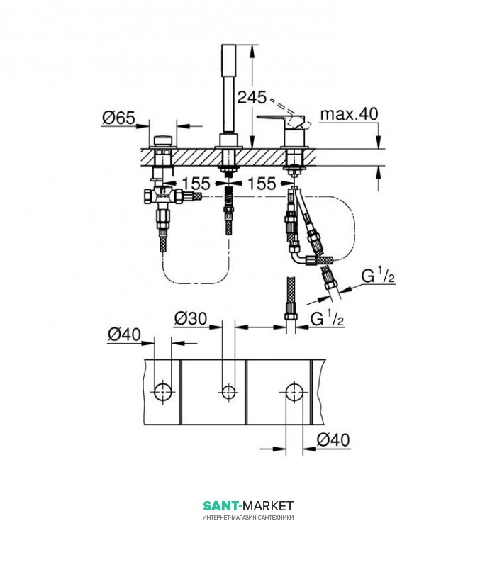 Змішувач одинважільний на борт ванни з душем Grohe колекція Lineare 19965001