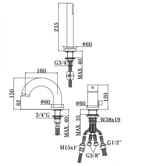 - Розділ: Комплекти змішувач для ванної з душовим гарнітуром