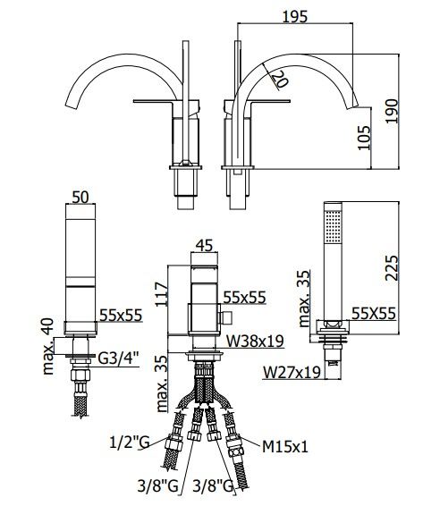Змішувач одинважільний на борт ванни з душем Paffoni Effe хром EF 040 CR
