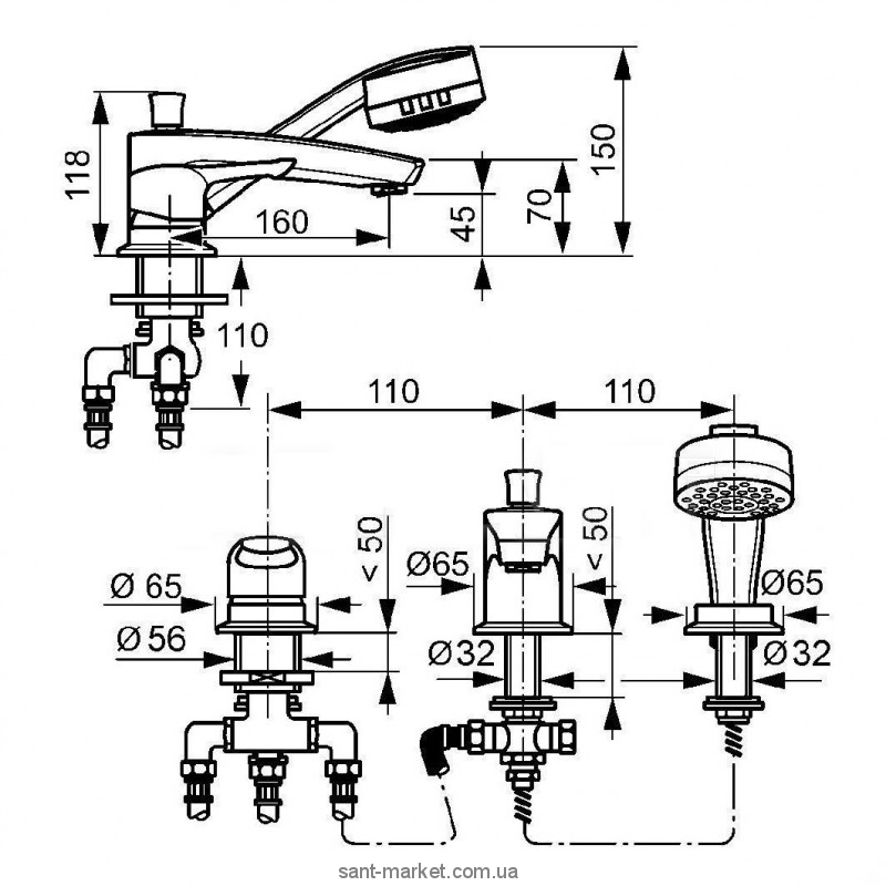 Довжина виливу становить 160 мм, його висота відповідає 45 мм. У верхній частині виливу розташований автоматичний перемикач ванна/душ.