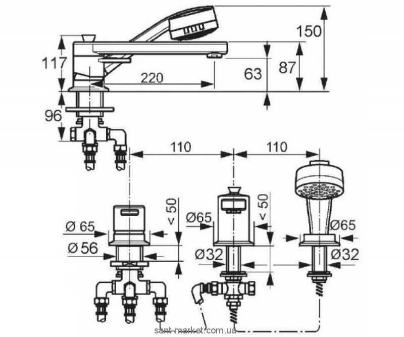 Змішувач одинважільний на борт ванни з душем Kludi колекція Zenta хром 384470575