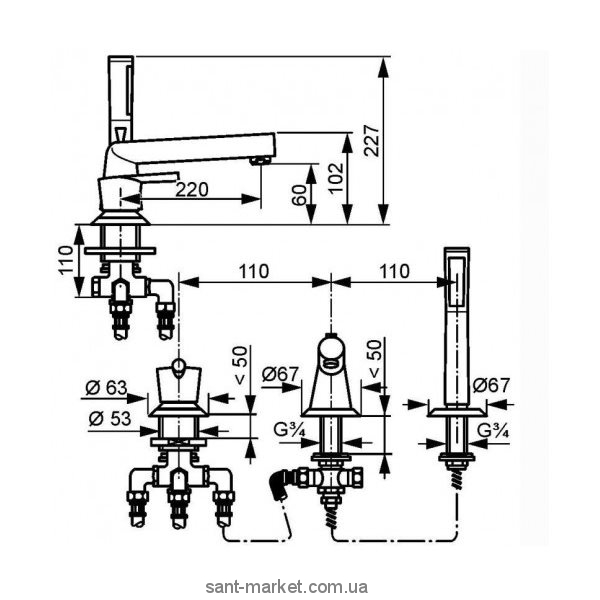 Змішувач одинважільний на борт ванни з душем Kludi колекція Kido хром 394470575