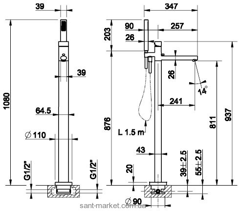 Змішувач одинважільний на підлогу (окремо) з душем Gessi Колекція Ovale хром 24901 031