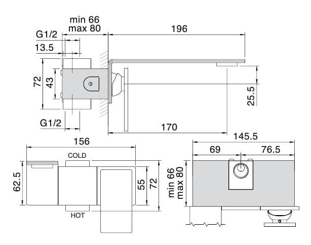 Змішувач одинважільний настінний Treemme 5мм нержавіюча сталь 2851IS5M