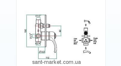 Змішувач одинважільний прихований (вбудований) Fiore колекція Jafar хром 47CR5134 Chrome