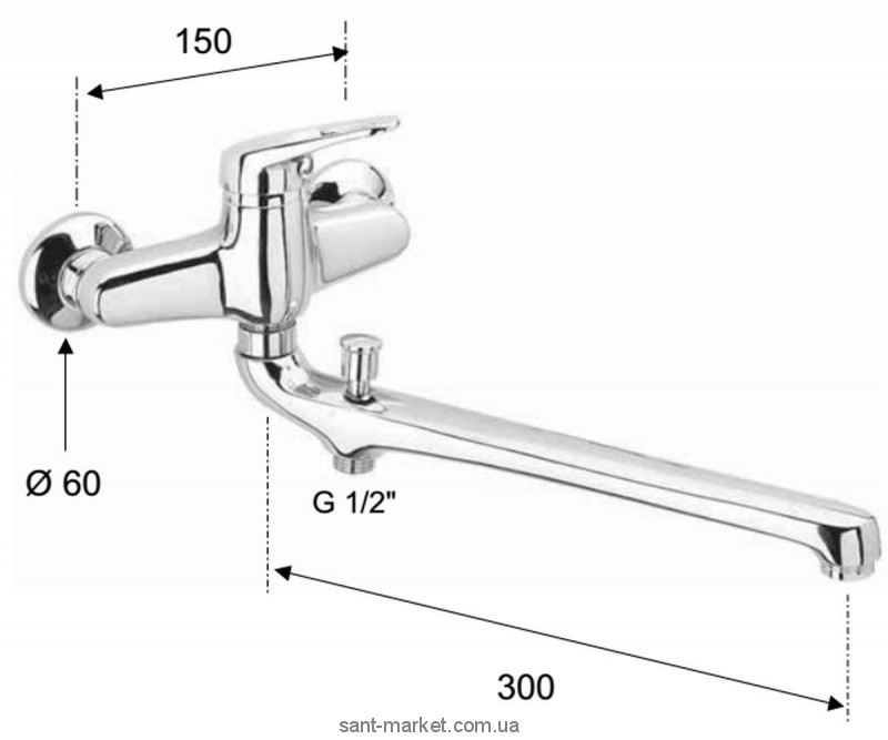 довгий литий вилив 30 см з перемикачем душ/вилив; без душу