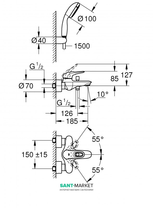 Змішувач одинважільний з душем для ванни Grohe Eurostyle New хром 3359230A