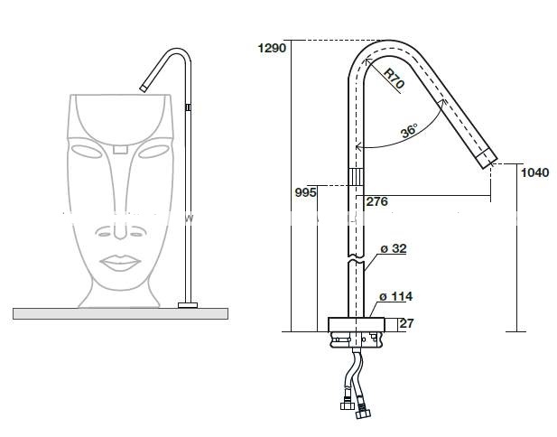 Змішувач підлоговий для раковини Kerasan Artwork змішувач нержавіюча сталь сатинована 756198