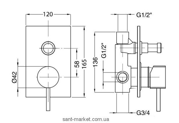 Змішувач прихований (вбудований) Bugnatese колекція Gypo хром CR745