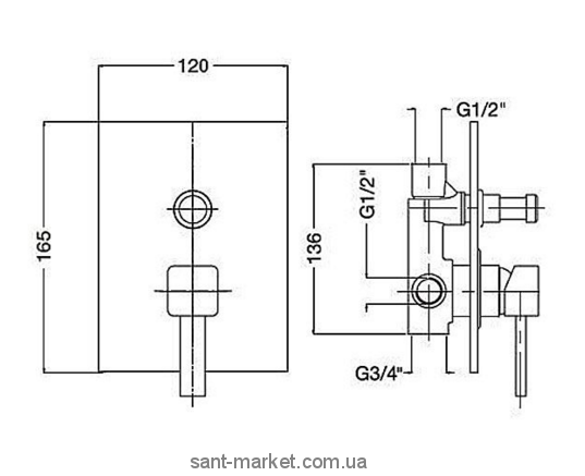Змішувач прихований (вбудований) Bugnatese колекція Inside хром INSCR9272