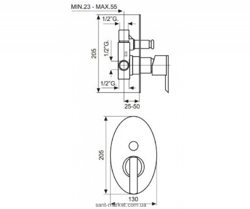 Змішувач прихований (вбудований) EMMEVI колекція Elly хром CR41019